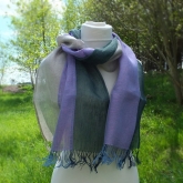 Szal lniany Nr 024 zieleń lila szary