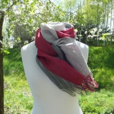 Szal lniany Nr 022 szary prążki malina