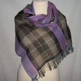 Szal lniany Nr 025 krata i lila ciemna